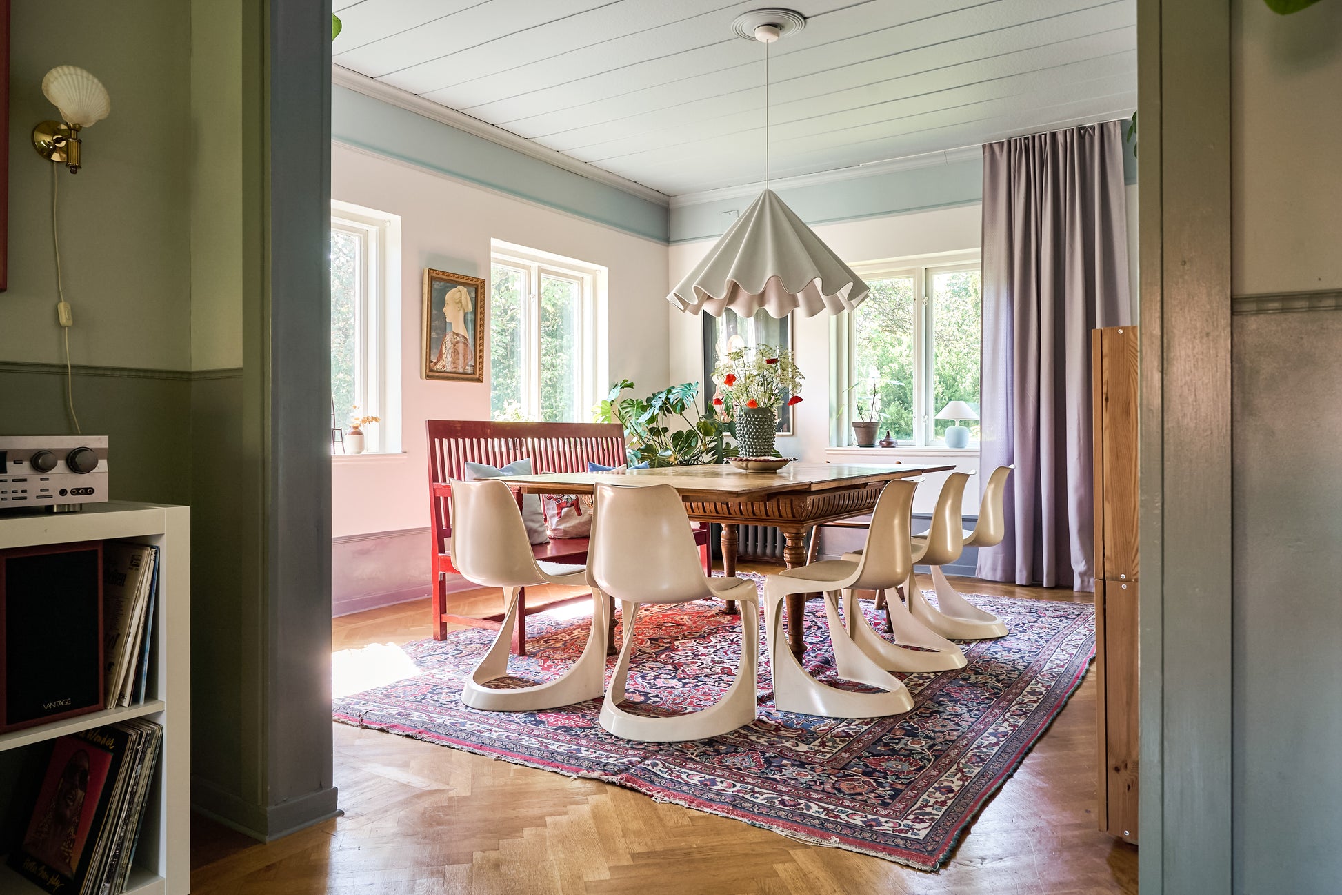 Designet er diskret, men har stadig en tidstypisk karakter. Dermed bevares boligens oprindelige stil. Loftet får et sammenhængende udtryk.