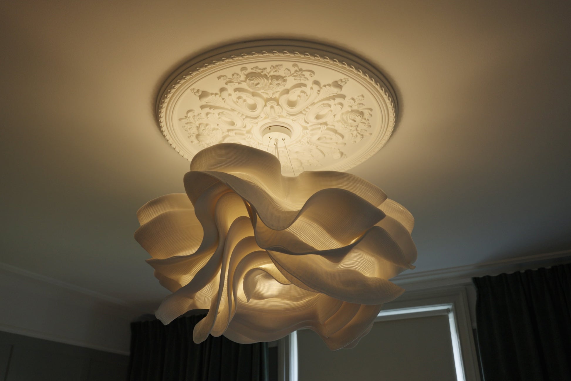 Denne loftsroset er en udtryksfuld loftsstukkatur med rig ornamentik og udformede detaljer. Formsproget er inspireret af forrige århundredeskifte og giver rosetten en tydelig historisk karakter med en følelse af håndværk og arkitektonisk tradition.